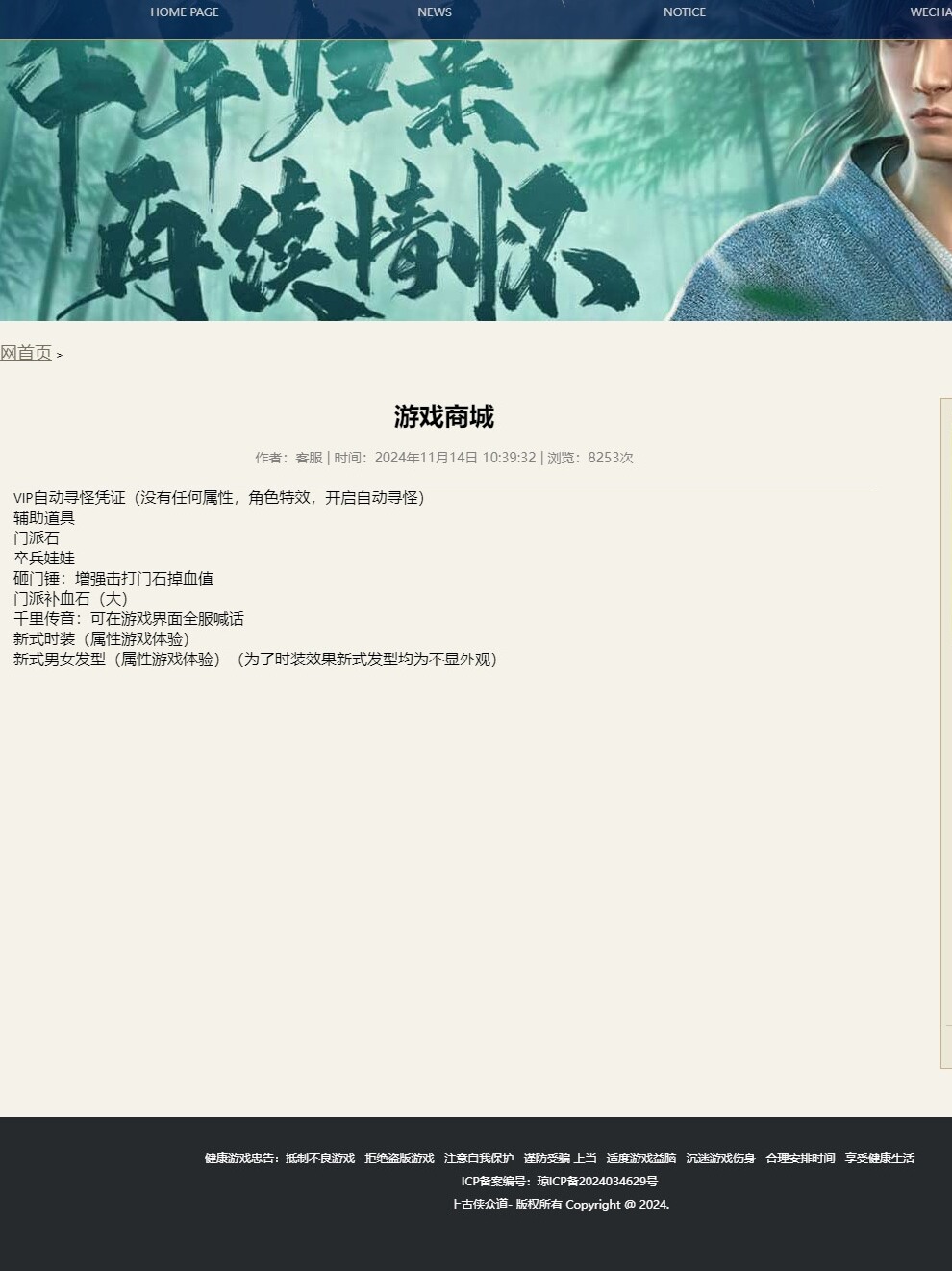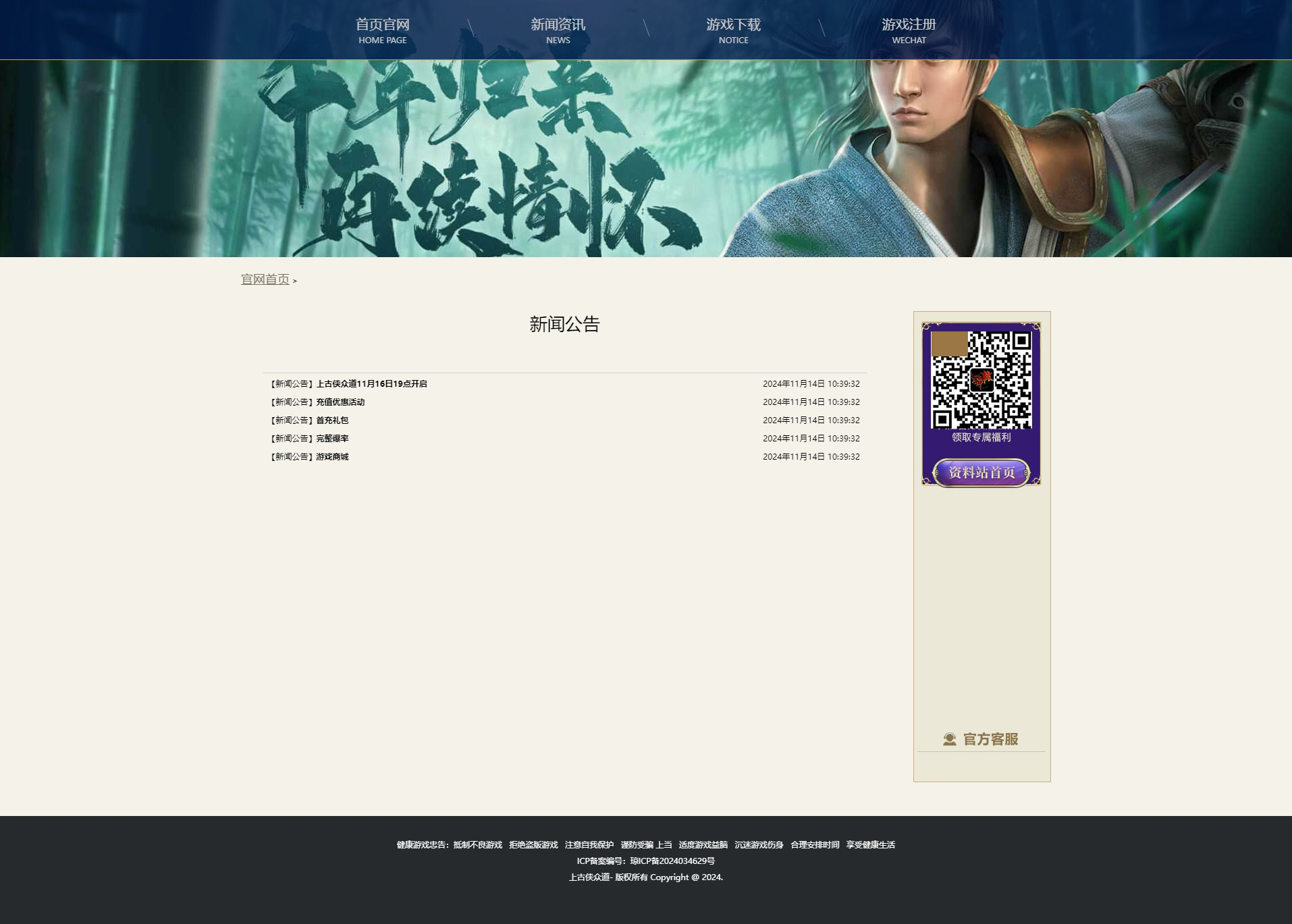 上古侠众道千年网站 游戏网站模板ASP源码后台