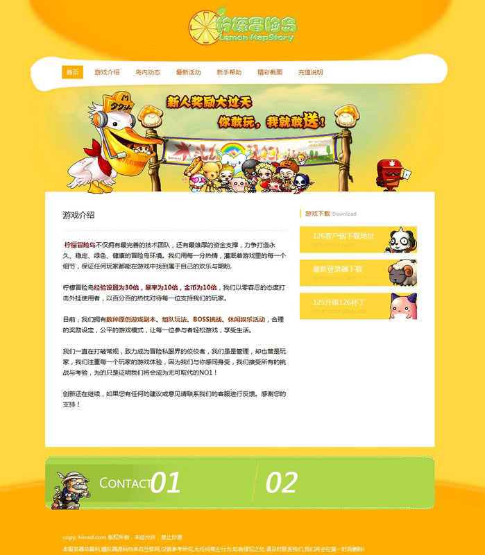柠檬冒险岛官方网站 ASP游戏网站源码网站 冒险岛网站源码