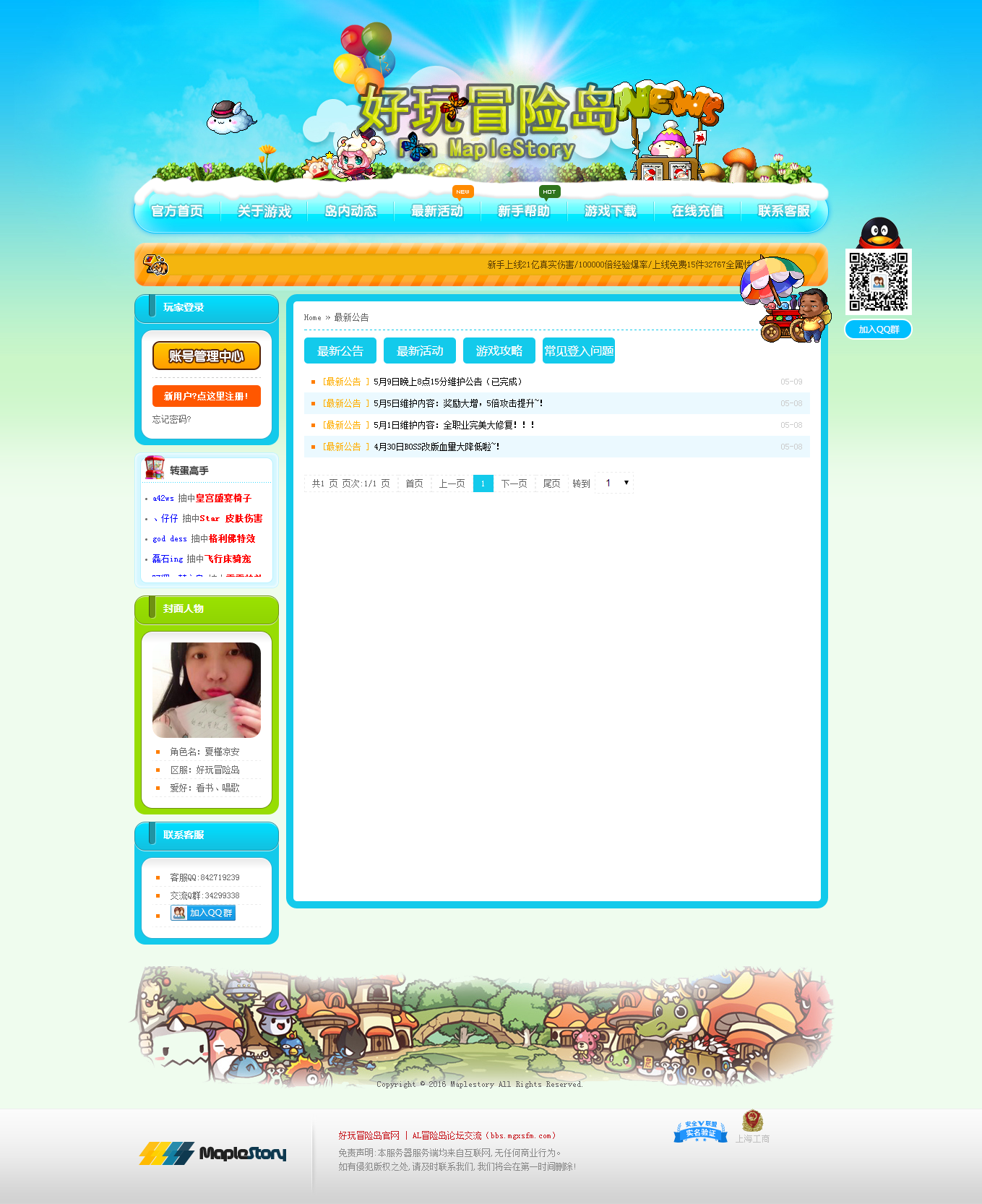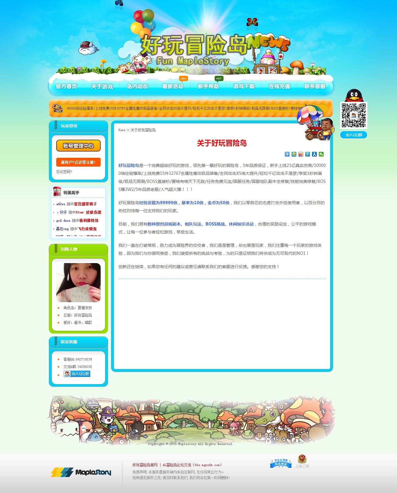 好玩冒险岛官方网站 ASP游戏网站源码网站 冒险岛网站源码