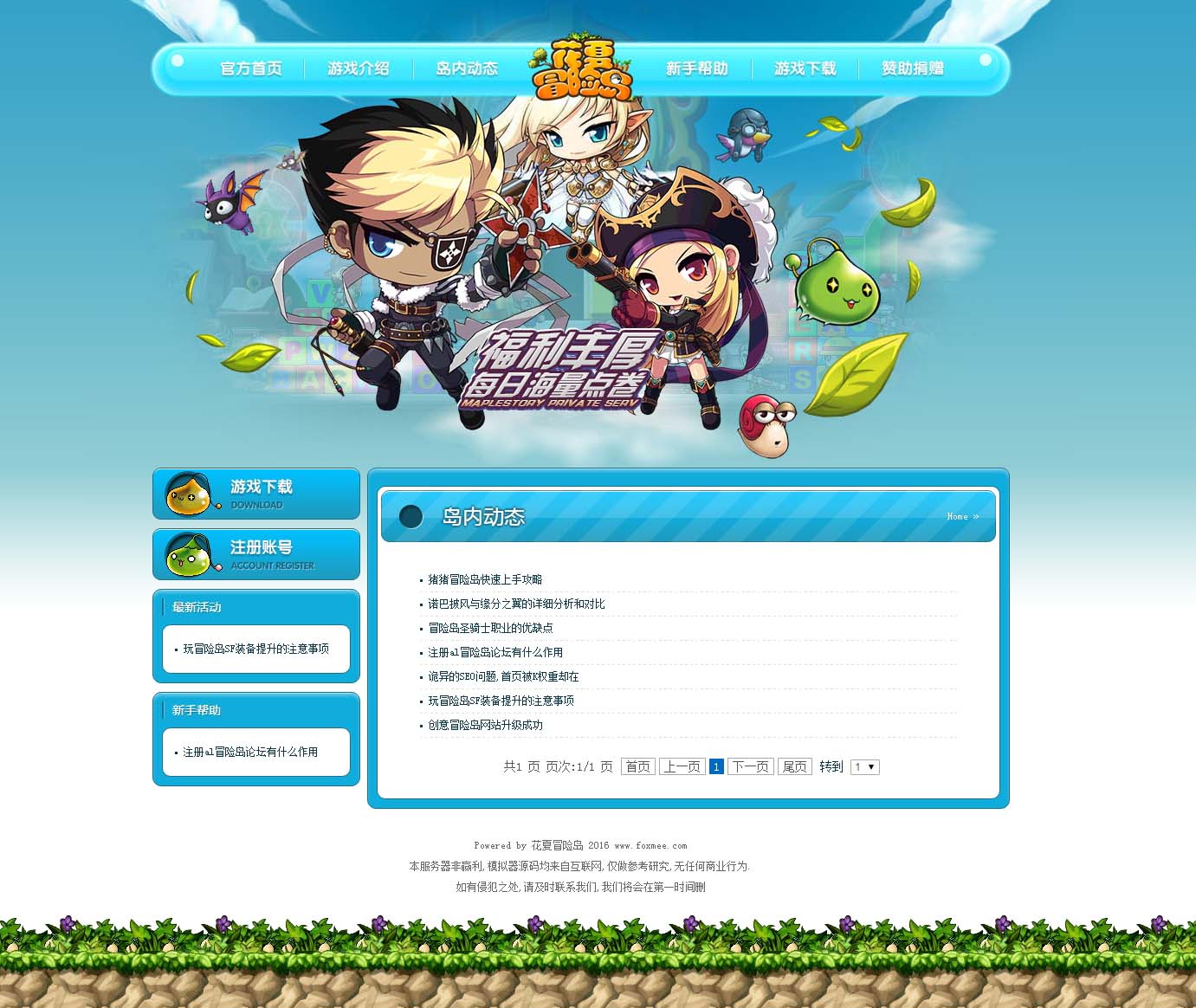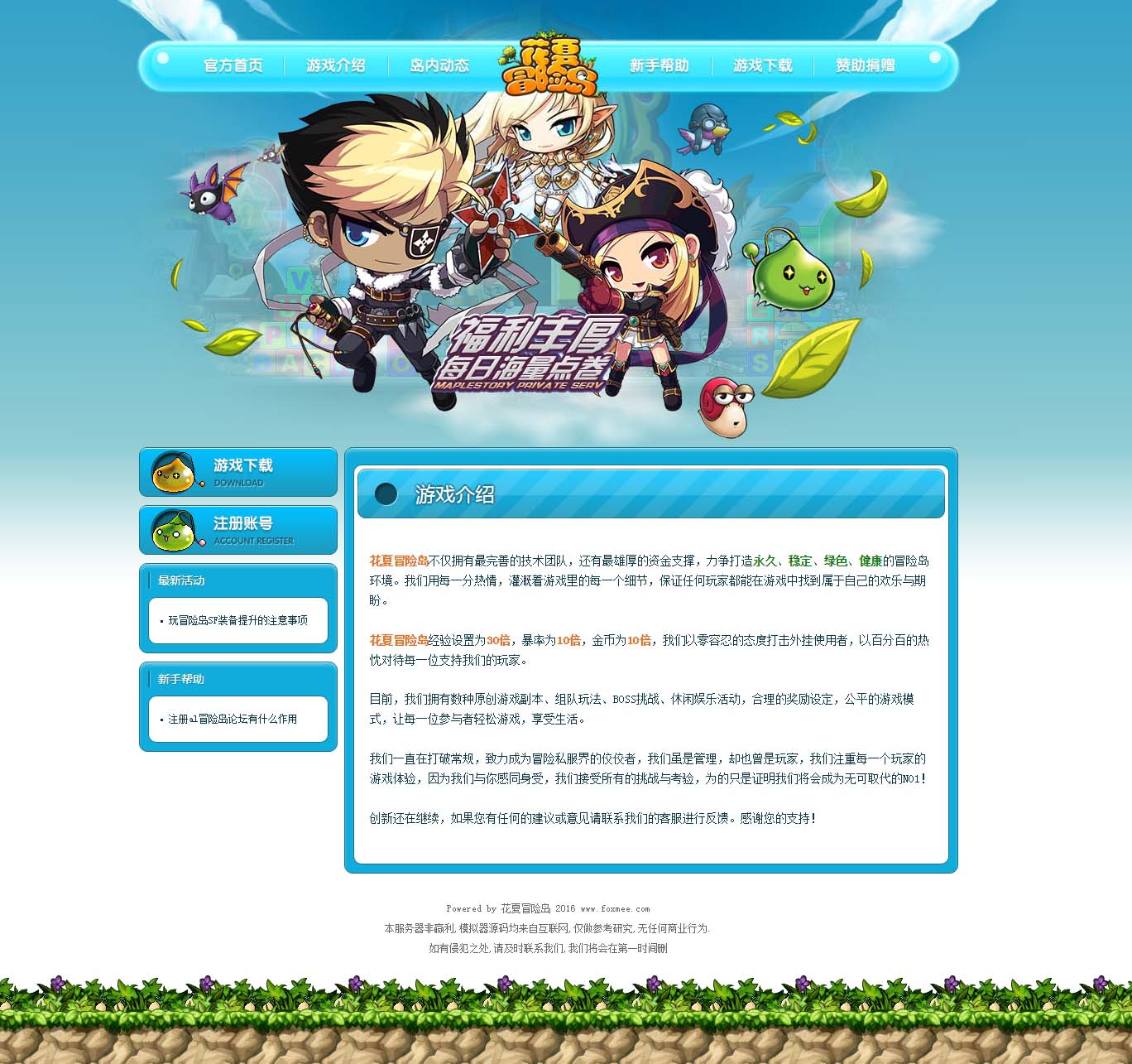 花夏冒险岛官方网站 ASP游戏网站源码网站 冒险岛网站源码