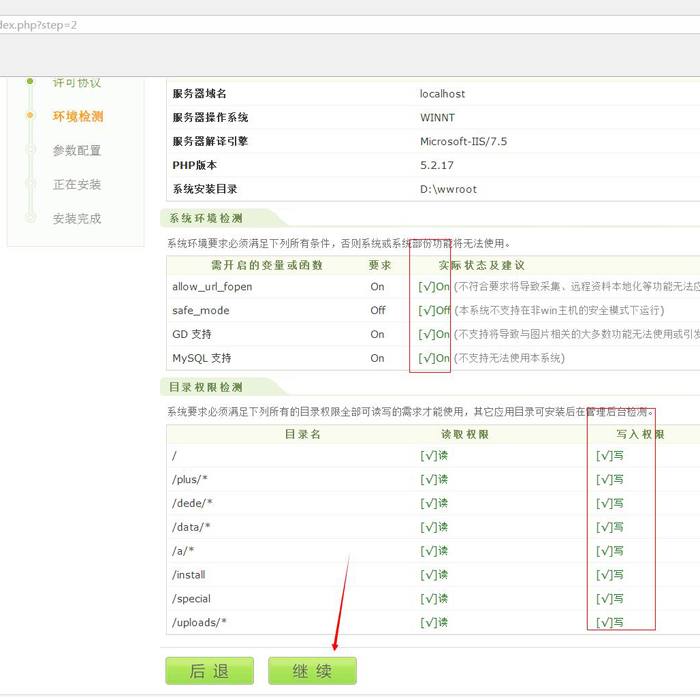 织梦安装教程步骤二:检测一下你的空间跟服务器是否支持织梦程序,如果不支持无法安装织梦程序。