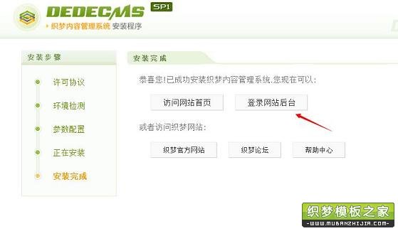 织梦安装教程步骤四:到这一步说明安装好了,登录网站后台进去基本设置里面恢复织梦数据即可。