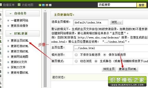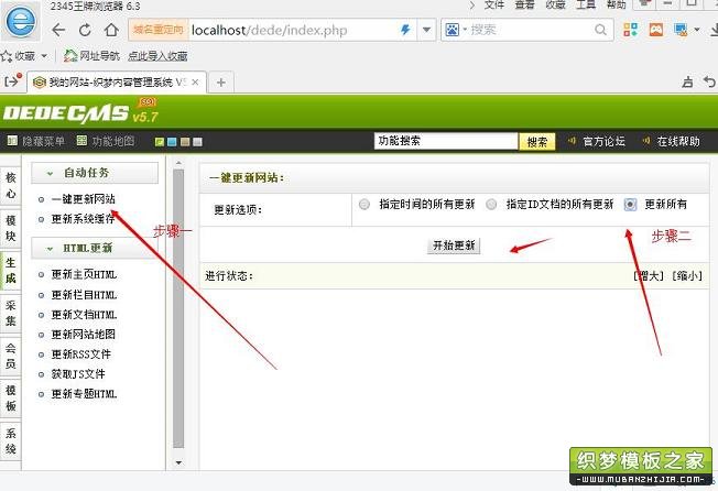 织梦安装教程步骤十一:更新一下主页也就是织梦打开的首页文件静态文件html更利用SEO搜索引擎排名优化。