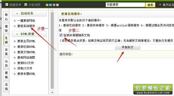 织梦安装教程步骤十二:更新一下系统缓存,并清理错误文档,如图安装织梦教程全部完成。
