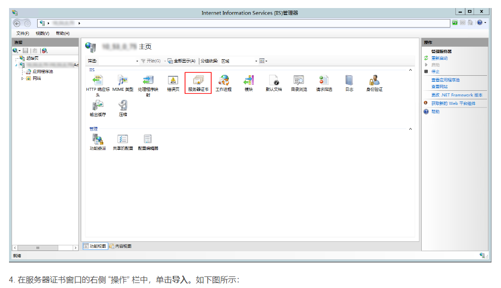 本文档指导您如何在 IIS 中安装 SSL 证书。