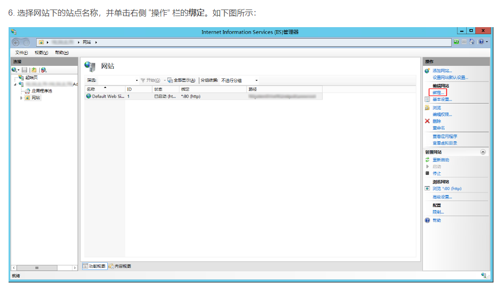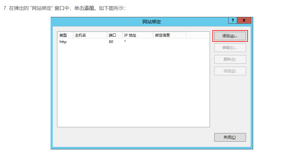 9. 添加完成后,即可在 “网站绑定” 窗口中查看到新添加的内容。