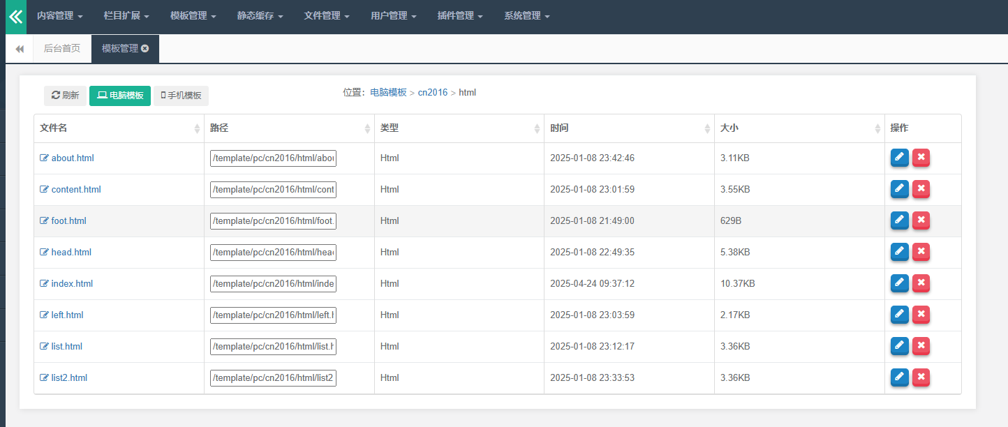 后台模板路经
